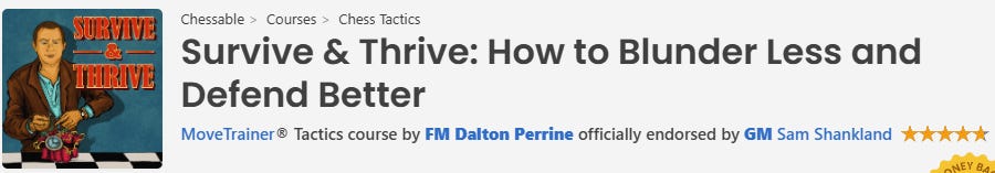 This philosophy is the foundation of my Chessable course “Survive & Thrive: How to Blunder Less and Defend Better” which was officially endorsed by GM Sam Shankland.